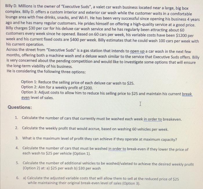 Solved Billy D Millions Is The Owner Of Executive Suds A Chegg Com